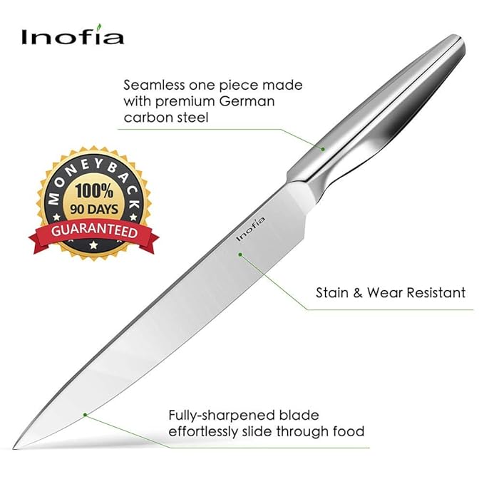 This knife is seamlessly made with premium German high carbon steel. Lifetime warranty.